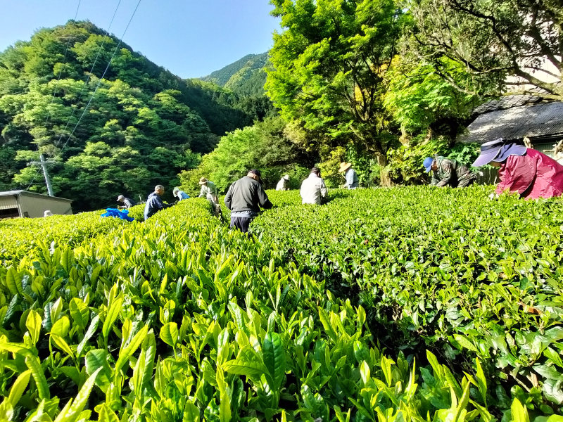 | 当日の流れ | 8:30 集合(集落活動センター向かいにある橋を渡った所の駐車場) 注意事項や作業内容を説明します。 ※遠方からお越しの方は、集合時間についてご相談ください。 9:00 作業開始 3箇所の茶畑でお茶摘みを行います。 12:00 作業終了・ランチ交流会 13:00 解散 |