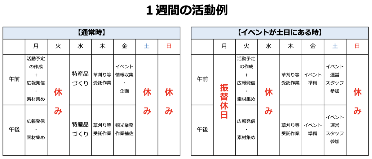 現在、村には観光協会が無くイベントの運営などは役場が行っています。協力隊としての活動期間中に経験を積んで、村から運営を委託される会社を起業することを目指すことができます。