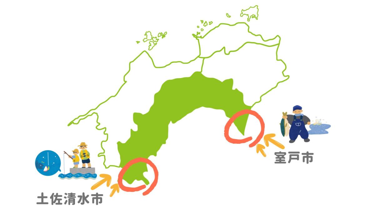 高知県内でも珍しい、手つかずの大自然が残っている東端のまち・室戸市と、西端のまち・土佐清水市。