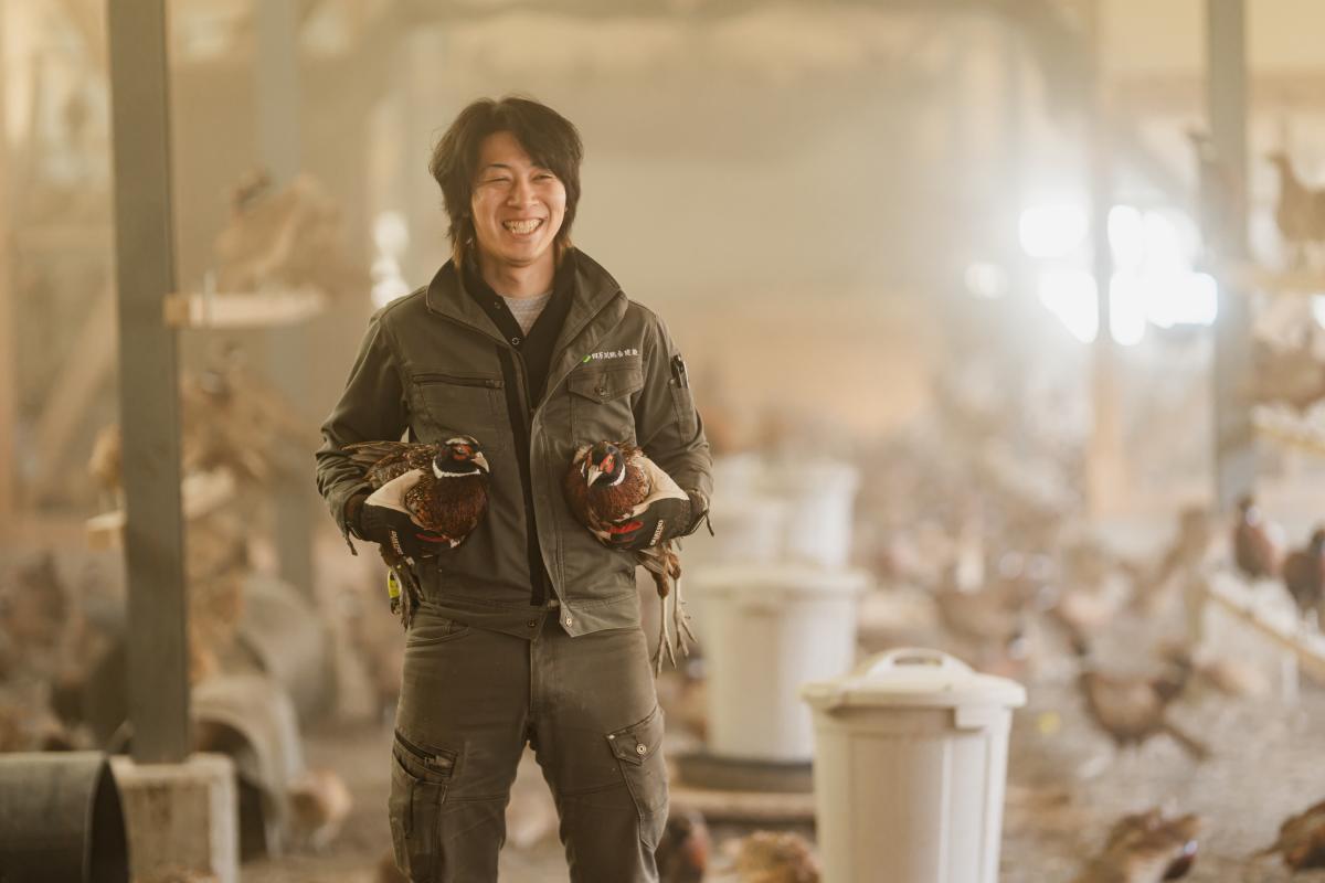 3年前に新築した鶏舎はとても広く、ストレスなく自由に動き回れる放し飼い状態で育てています。11月ごろからキジをさばく作業に入りますが、こちらも新設された食肉加工施設で熟練の職人が手作業で丁寧にさばいていきます。そうして出来上がったキジ肉製品が、ふるさと納税やオンライン通販でたくさんの方々に届けられることにやりがいを感じます。