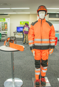 - 実物の防護服やチェーンソーをご覧いただけます。