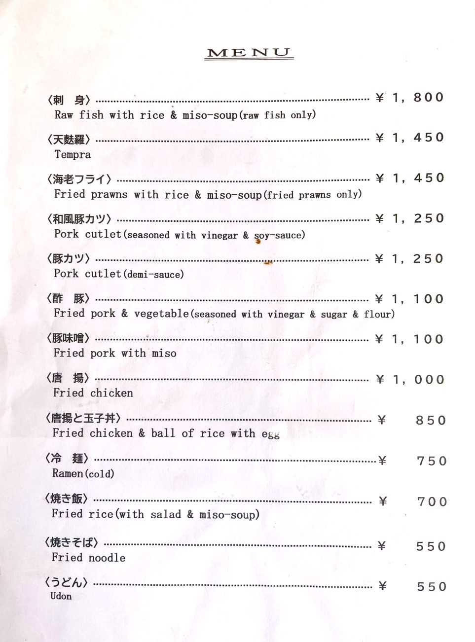 今でも外国人観光客が時折訪れるため、英語のメニューも完備している。SNSでの情報発信も含めて、新オーナーのやり方次第では、さらに多くの飛び込み客を確保できそう。