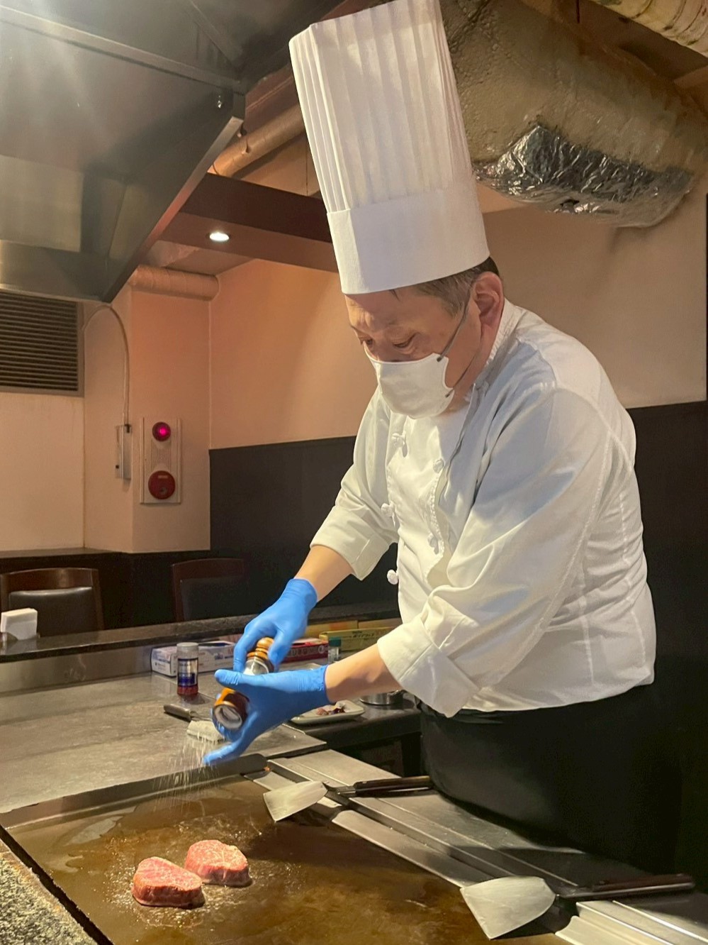 メーンになるのはカウンター席。客の目の前に設置されている鉄板でステーキや魚介類を焼き、その場で提供するやり方。サーロインやフィレなどのコース料理を中心に豪華なラインナップを持つ。仕切りがされたボックス席も用意されており、個室が希望のお客さんに重宝されている!